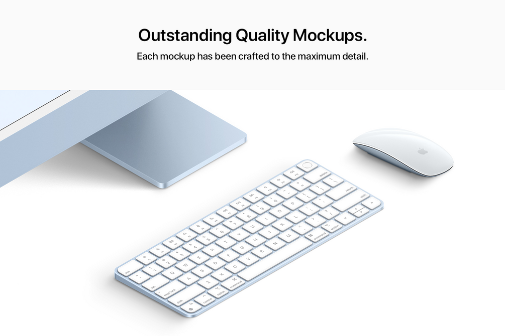- Includes iMac 24" - 10 Mockups Scenes PSD high-quality files (All the scenes that you will see in the 2nd picture they already included in the purchase | 5 Original Mockups | 5 Clay Mockups).