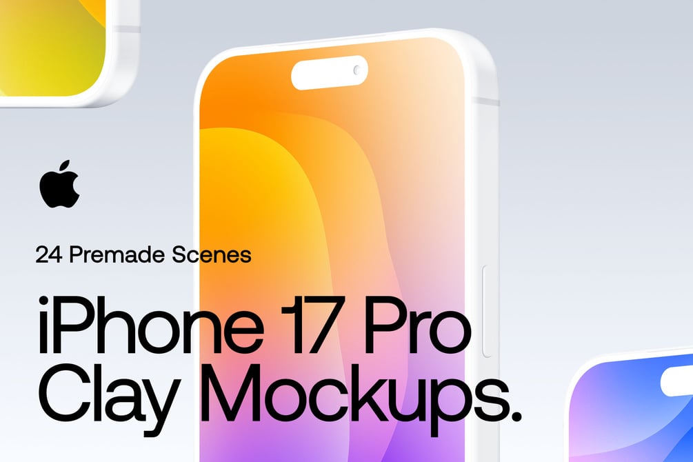 iPhone 17 Pro Clay - 24 Mockups Scenes - PSD & FIG