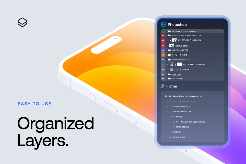- Includes iPhone 17 Pro Clay - 24 Mockups Scenes - PSD and 1 Figma file. (All the scenes that you will see in the 2nd and 3rd picture are included).