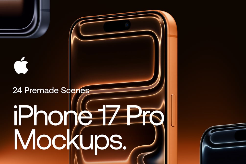 Introducing the iPhone 17 Pro Mockups Collection, designed for professionals who need premium, photorealistic device mockups. This exclusive set includes 24 iPhone 17 Pro scenes in .PSD and .FIG formats, featuring Apple’s latest aluminum unibody design, edge-to-edge display, and refined Pro colors.