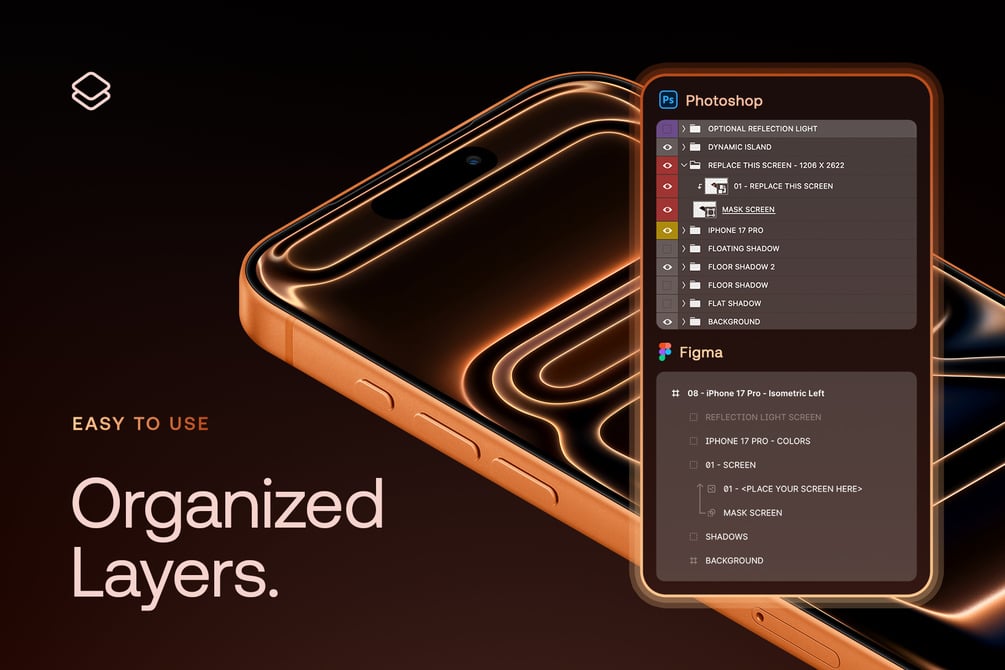 • Includes iPhone 17 Pro - 24 Mockups Scenes - PSD and 1 Figma file. (All the scenes that you will see in the 2nd and 3rd picture are included).