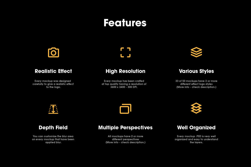 Our best logo mockups created yet with this bundle of 50 logo mockups bringing realistic effects mockups with various perspectives and most of them contains various styles type of logo from 3D, embossed, debossed, flat, silver, gold, etc. You can easily change and place your own design | Image with few clicks using Smart Objects. More info about each mockup, watch below.