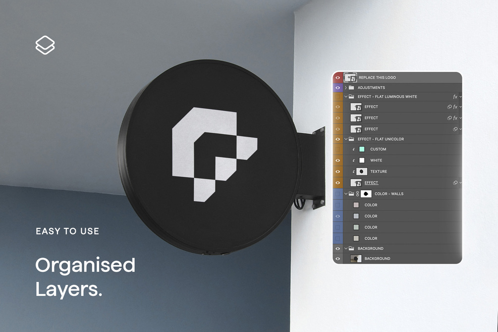 - Includes multiple logo effects depending on the style of mockup from flat, 3D, 3D luminous, etc.