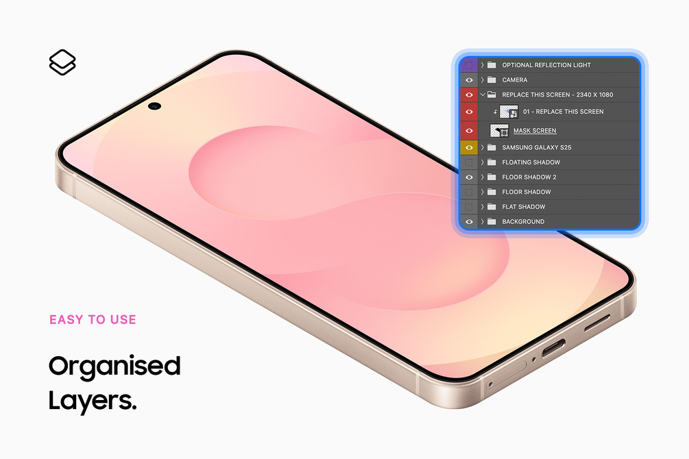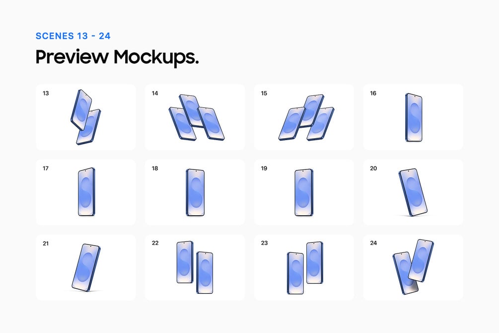 - Includes Galaxy S25 - 24 Mockups Scenes - PSD and 1 Figma file. (All the scenes that you will see in the 2nd and 3rd picture are included).