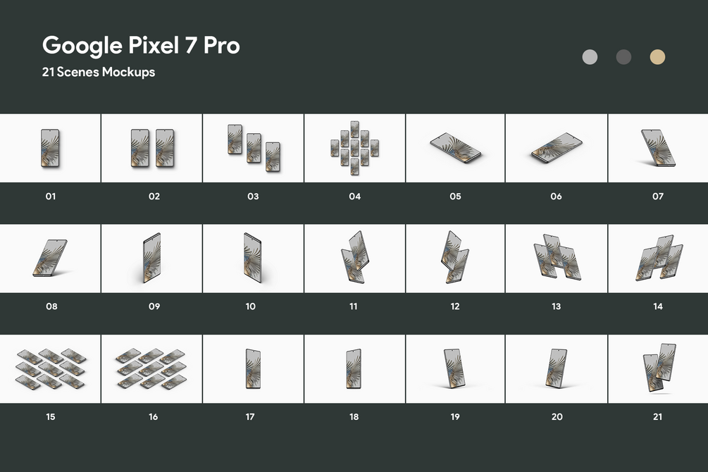 - Includes 21 Mockups Scenes of Pixel 7 Pro PSD high-quality files (All the scenes that you will see in the 2nd picture they already included in the purchase).