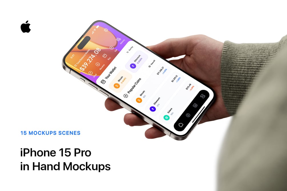 - Includes 15 iPhone 15 Pro in Hand Mockups - PSD high-quality files (All the scenes that you will see in the 2nd and 3rd picture + Bonus Cover Scene they already included in the purchase).