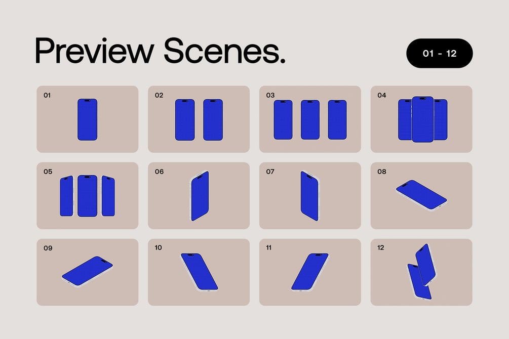Each mockup is built with fully vector shapes, allowing you to easily adjust path thickness, colors, and more. You can customize backgrounds, hide optional details such as the SIM card or antenna, and create your own unique compositions.