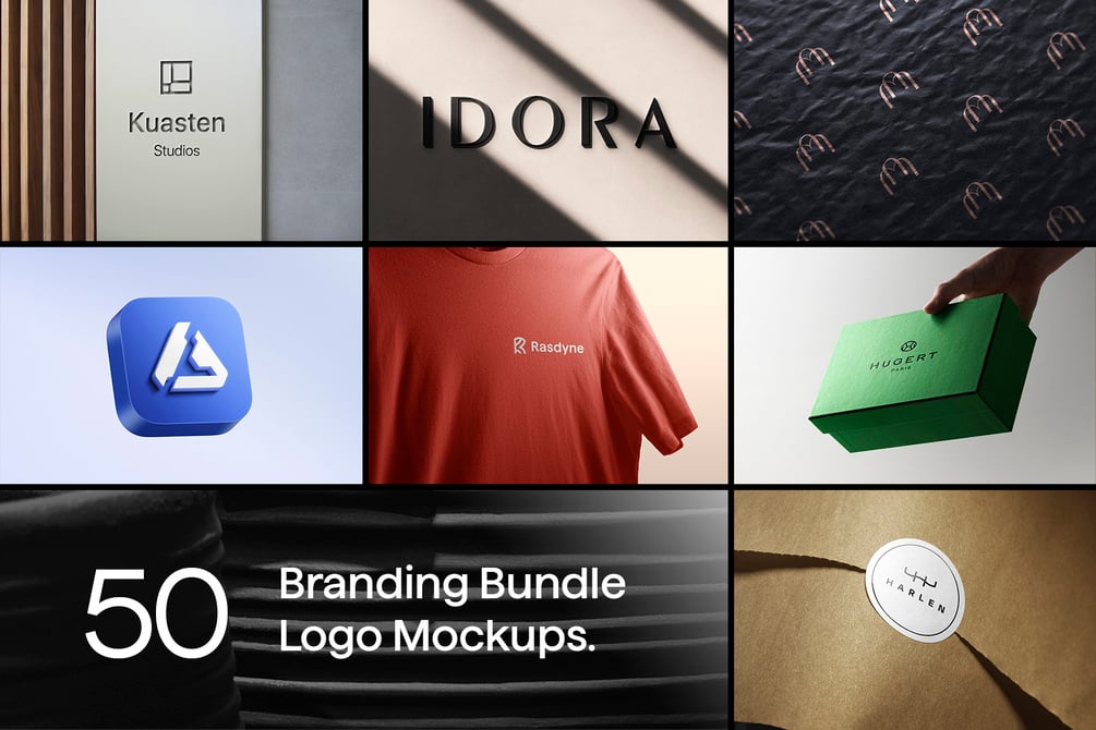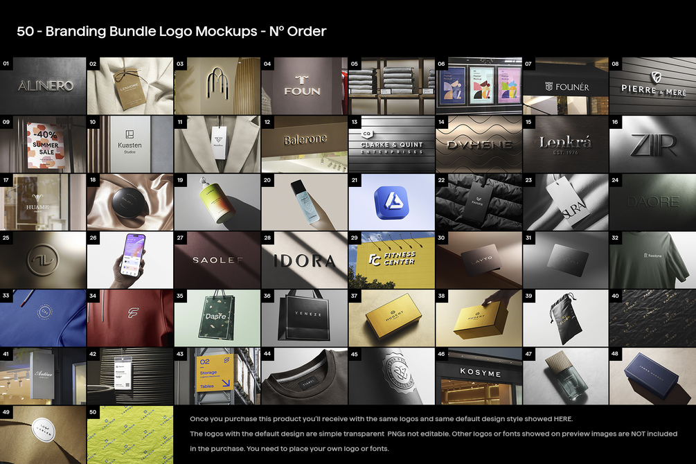 SAVE OVER +$450 BUYING BUNDLE 50 LOGO MOCKUPS FOR ONLY - $16. EACH MOCKUP IS VALUED $9.