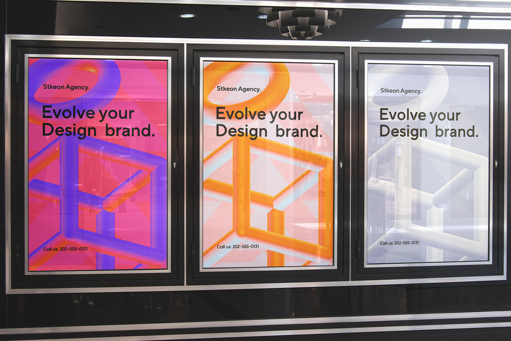 Posters Mockup includes smart objects (REPLACE THIS SCREEN) having 1 different effect styles (Flat Colored). Customizable ambient lights.