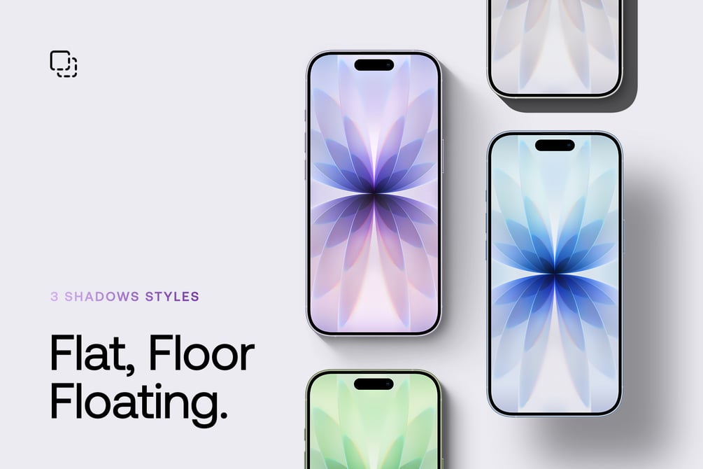 - Each PSD Mockup has 3 different shadows - Flat, Floor Shadow & Floating Shadow.