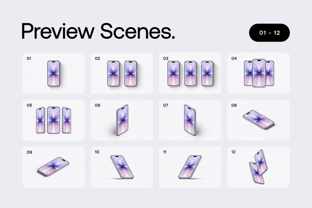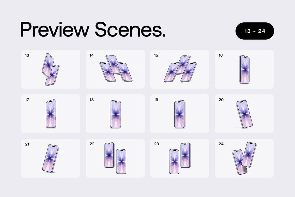 - Includes iPhone 17 - 24 Mockups Scenes - PSD and 1 Figma file. (All the scenes that you will see in the 2nd and 3rd picture are included).
