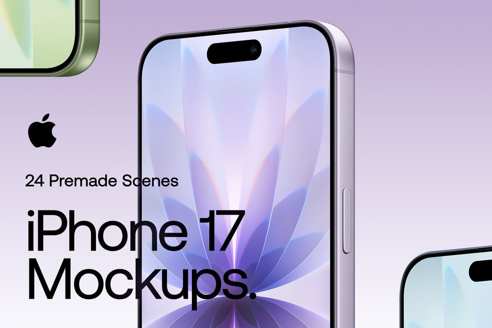 Introducing the iPhone 17 Mockups Collection, crafted for designers who need realistic and customizable device mockups. This premium set includes 24 iPhone 17 scenes in .PSD and .FIG formats, featuring edge-to-edge display and stunning new color finishes.