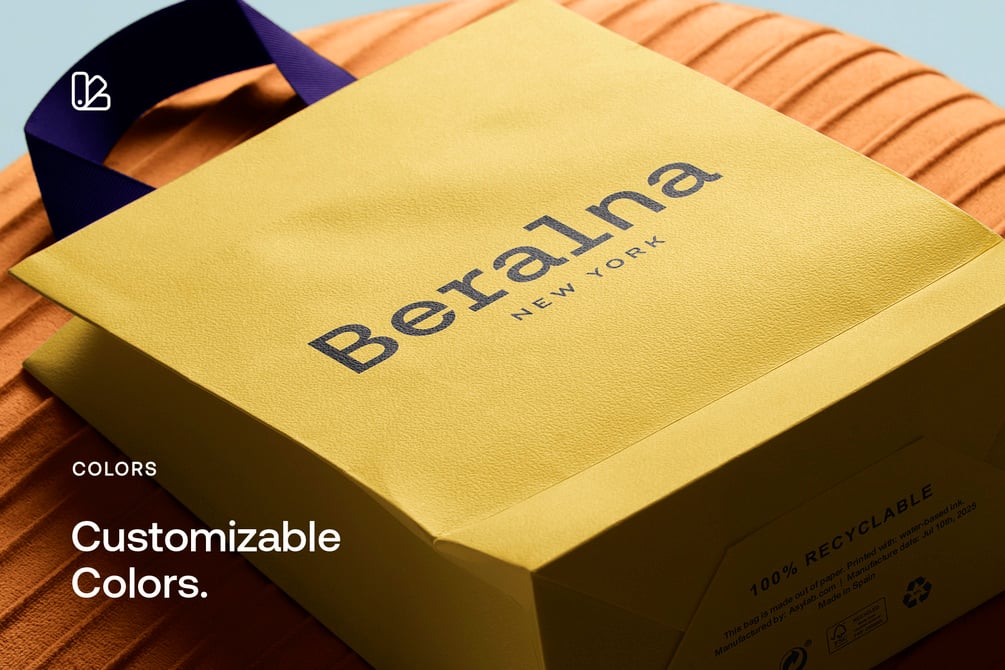 Logo Mockup includes smart objects (REPLACE THIS SCREEN) having 4 different design effect style (Flat Colored, Flat Textured Silver/Gold, Embossed and Debossed). Customizable color of the shopping bag, puff and background. You can edit the text at the bottom of the shopping bag. Customizable adjustment lights.