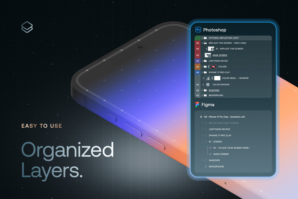 - Includes iPhone 17 Pro - 24 Mockups Scenes - PSD and 1 Figma file. (All the scenes that you will see in the 2nd and 3rd picture are included).