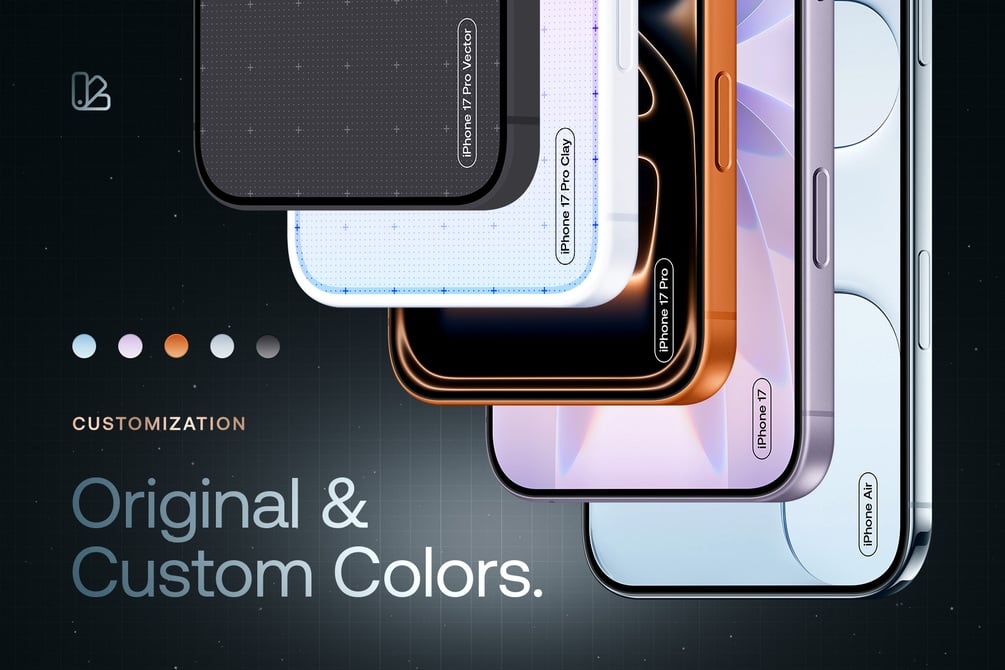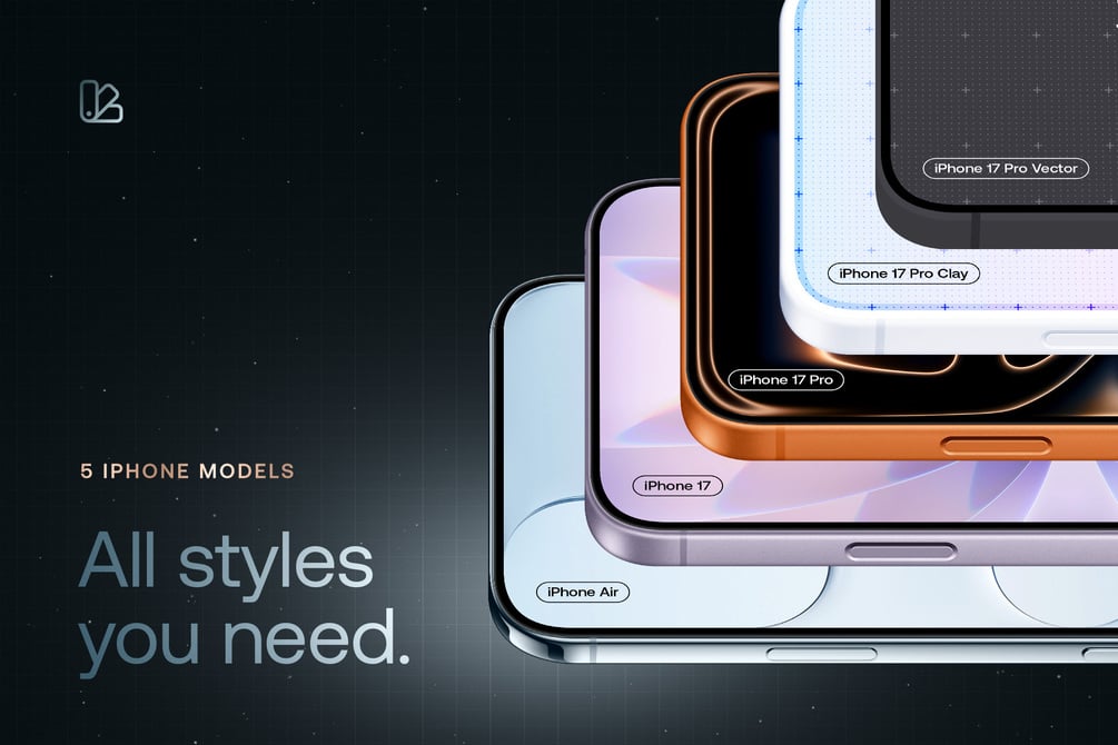 Inside the bundle, you will find mockups for iPhone Air, iPhone 17, iPhone 17 Pro, iPhone 17 Pro Clay, and iPhone 17 Pro Vector, giving you the freedom to choose the perfect presentation style for any project. Whether you need photorealistic previews, soft minimal layouts, or scalable vector visuals, this bundle adapts to every design workflow.