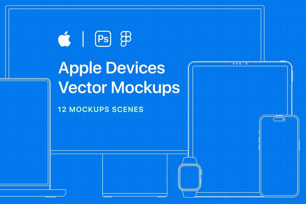 Apple 12 Devices Outline & Fill Vector Mockups - Bundle 2024 - Photoshop & Figma.