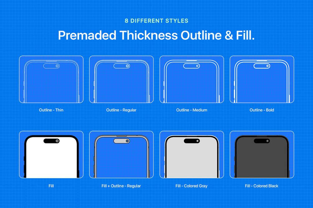 - Includes 9 Styles: Outline Thin, Outline Regular, Outline Medium, Outline Semibold, Outline Bold, Fill, Fill + Outline Regular, Colored Gray and Colored Black.