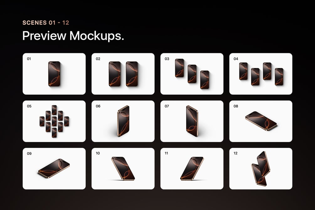 iPhone 16 Pro - 24 Mockups Scenes - PSD & FIG