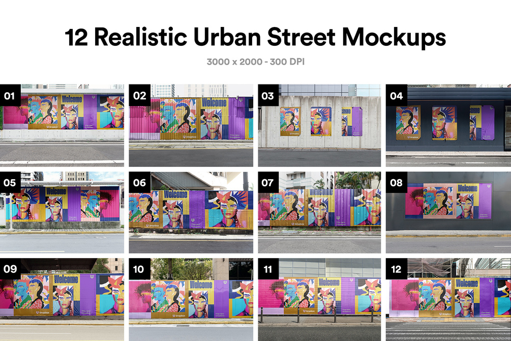 12 Realistic Urban Street Mockups - PSD